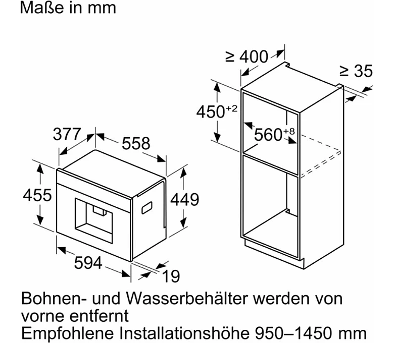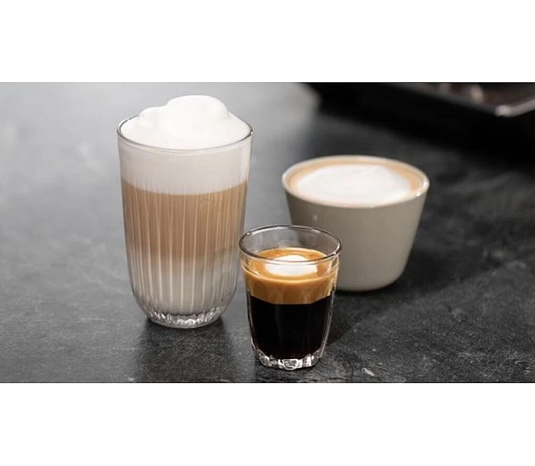 Komfortní prvkyNastavitelný výtok na kávu, odnímatelná nádržka na vodu, propojení domácích spotřebičů, odnímatelná nádoba na kávovou sedlinu, ukazatel zbývajícího nápoje, funkce One Touch, funkce horké vody, odnímatelná odkapávací miska